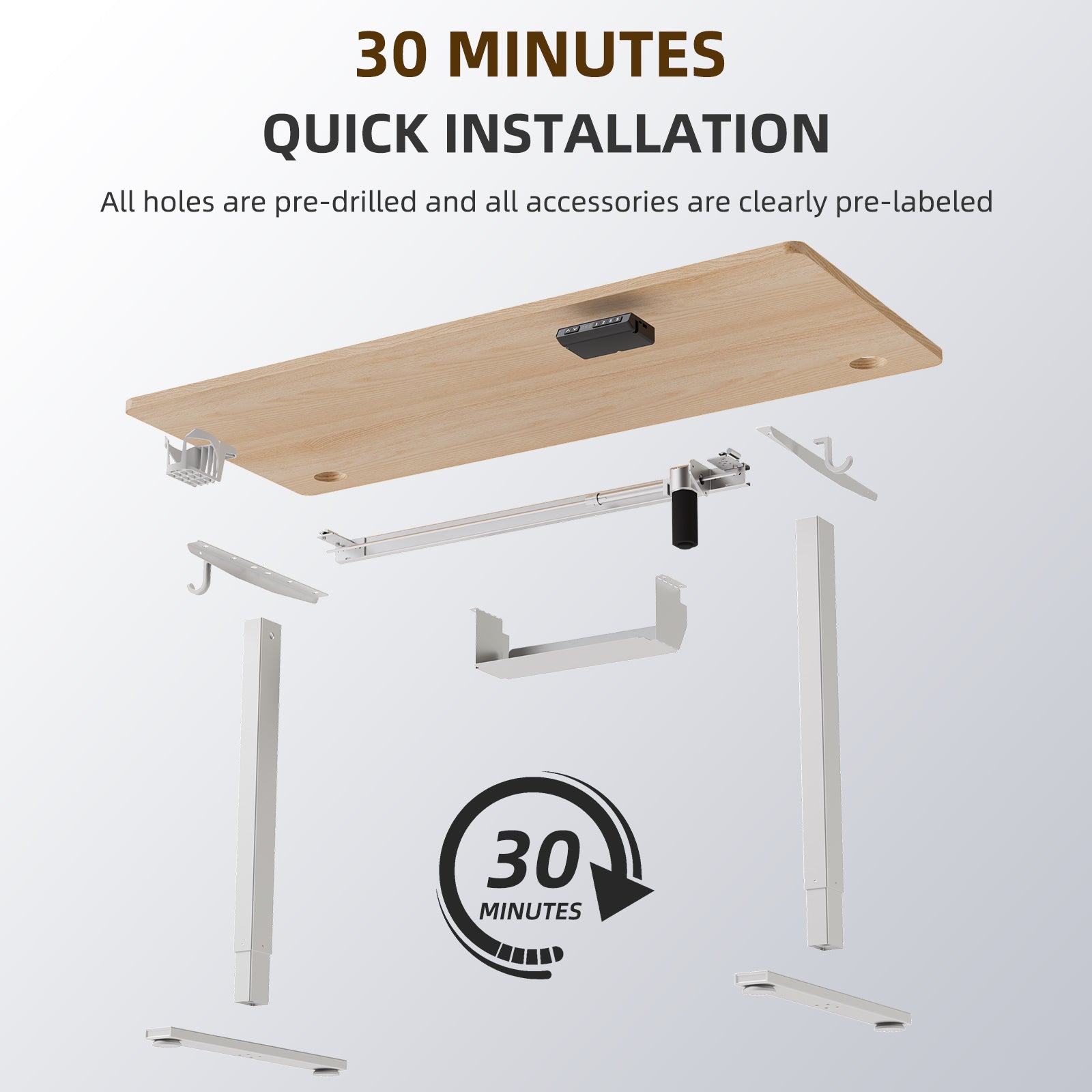 The desktop comes in two pre-assembled panels with a clear and logical assembly structure for quick setup. Our professional customer service team is always ready to provide prompt and helpful support.