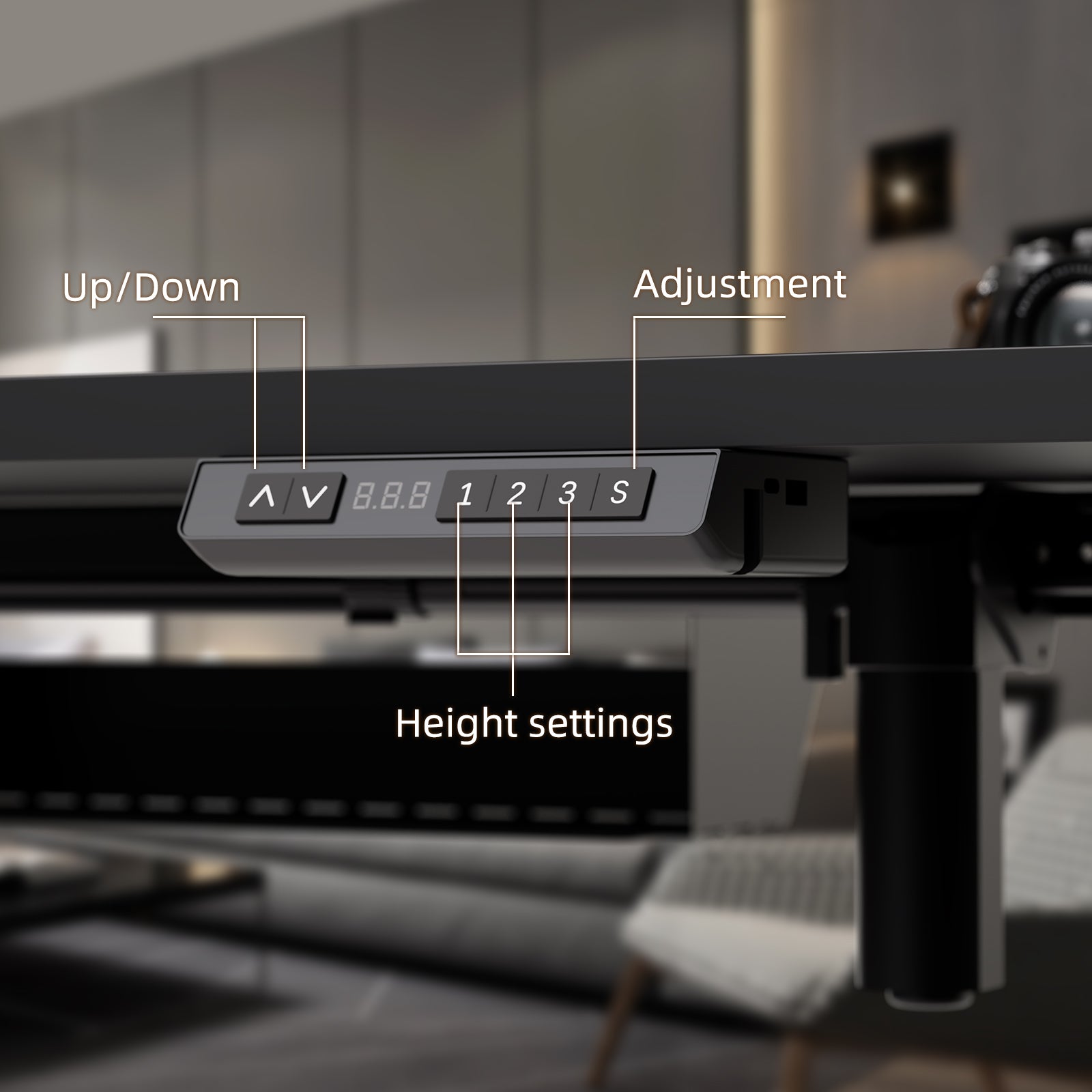 Customize up to three height presets with the 1, 2, and 3 memory buttons for quick access to your preferred positions. The intelligent anti-collision system precisely detects obstacles, enhancing safety during adjustments.