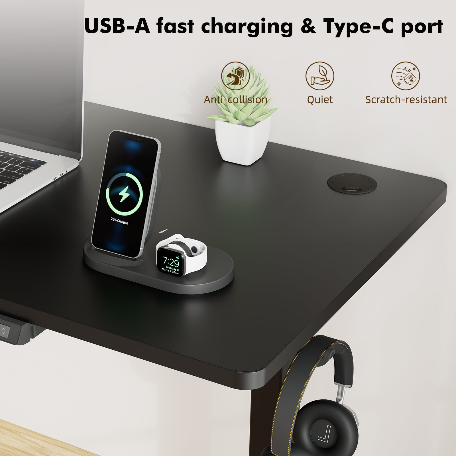 Electric Height-Adjustable Sit-Stand Desk with Memory Function, Anti-Collision, and USB-A / Type-C Ports