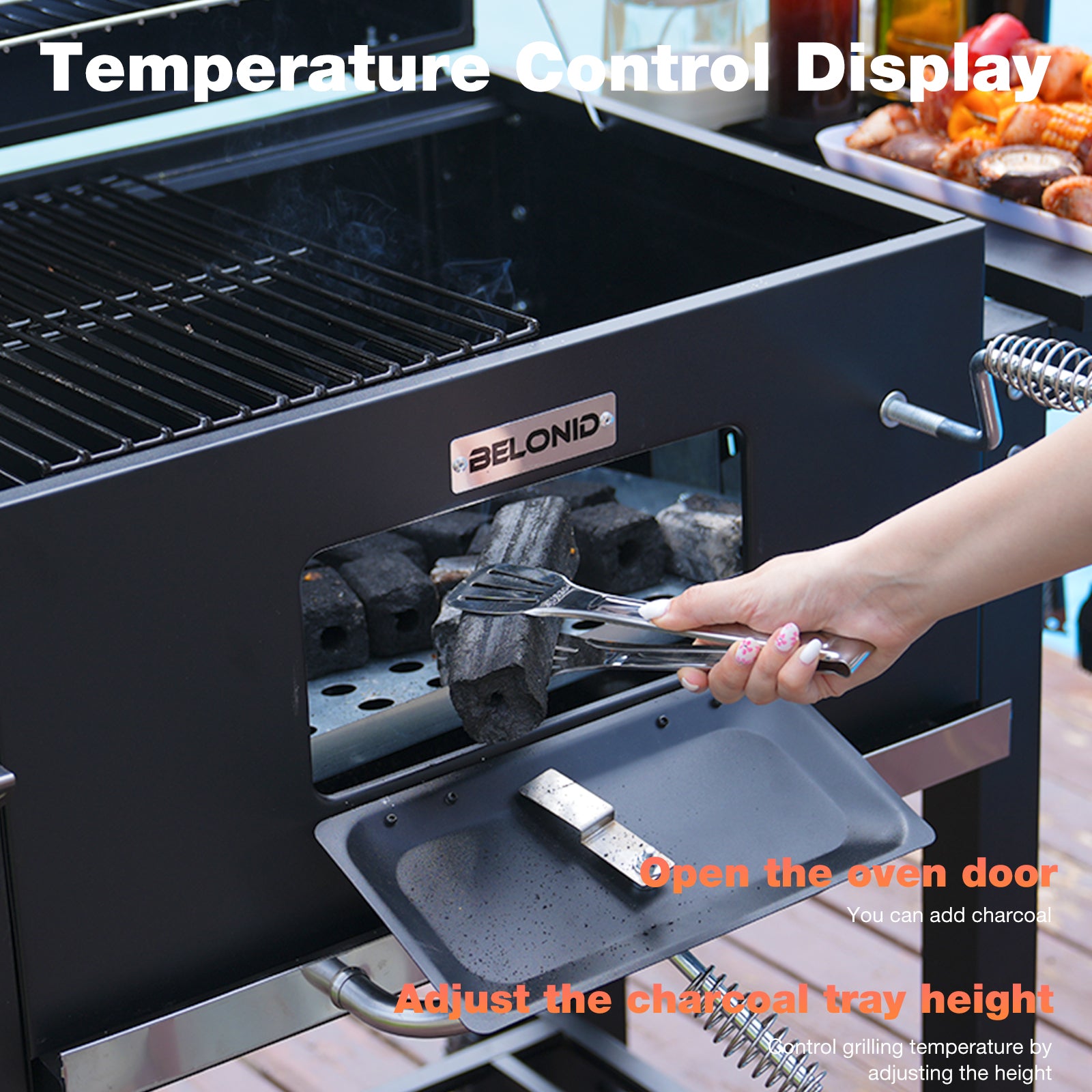 Crank-adjustable coal tray - stepless height adjustment for precise heat control. Quad-directional air vents optimize airflow. Built-in lid thermometer monitors cooking temperature in real time.