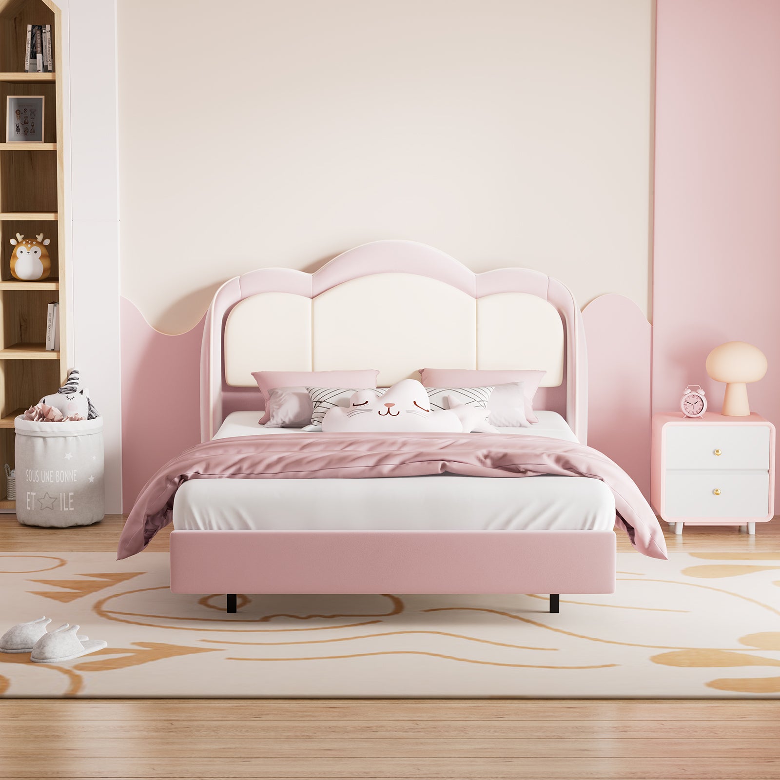 The headboard is upholstered with velvet and filled with premium foam, soft and skin-friendly, providing comfortable support. Whether playing, reading, or resting, it remains warm and cozy.