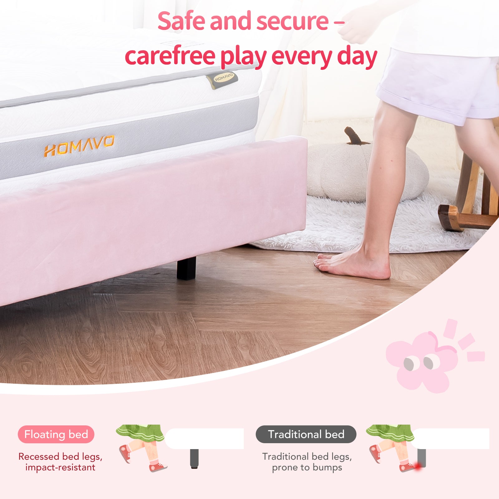 Floating bed legs – safe from bumps