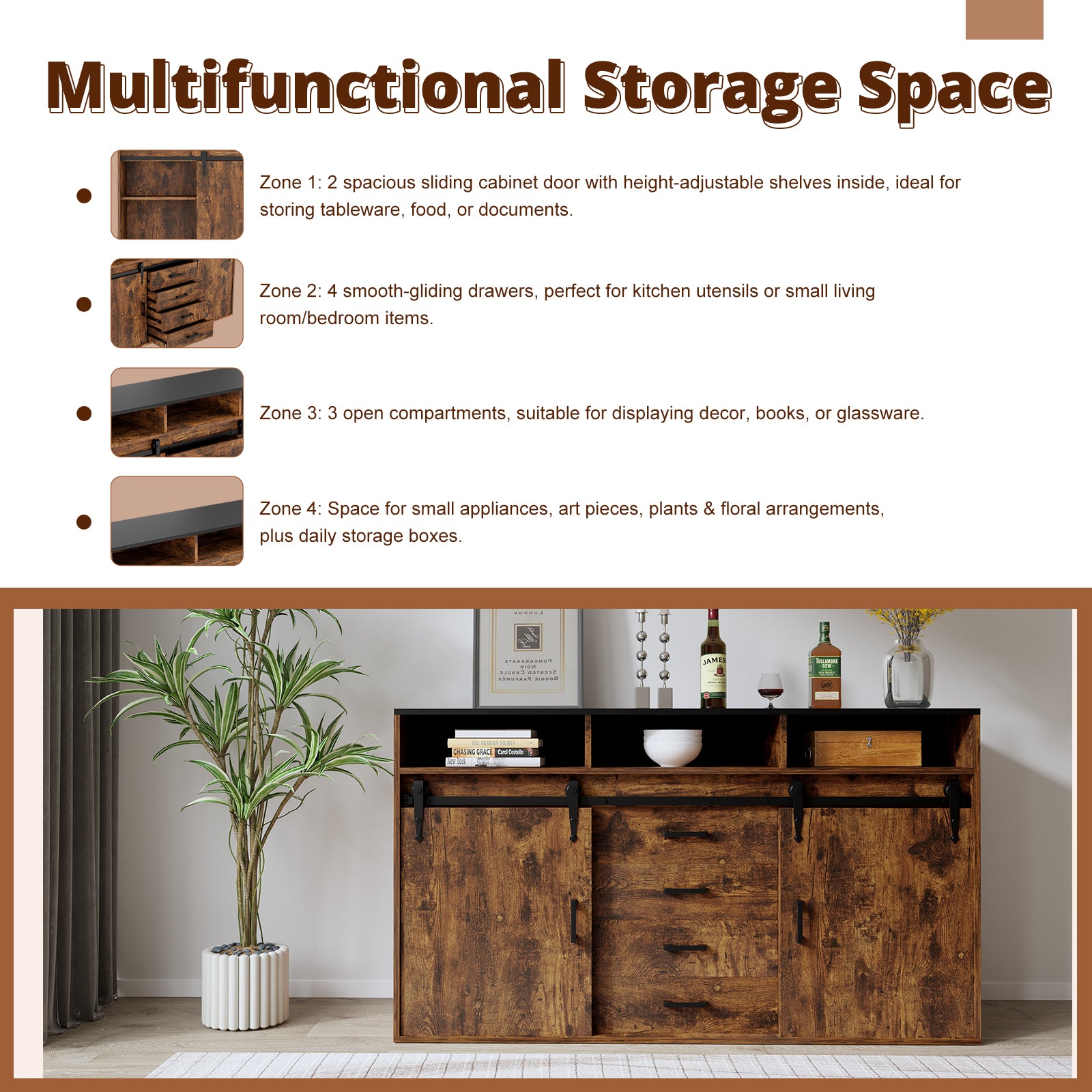 HOMAVO Modern 2-Piece Sideboard with 4 Drawers, 2 Sliding Doors and 2 Open Shelves | Elegant Storage Cabinet for Living Room or Dining Room