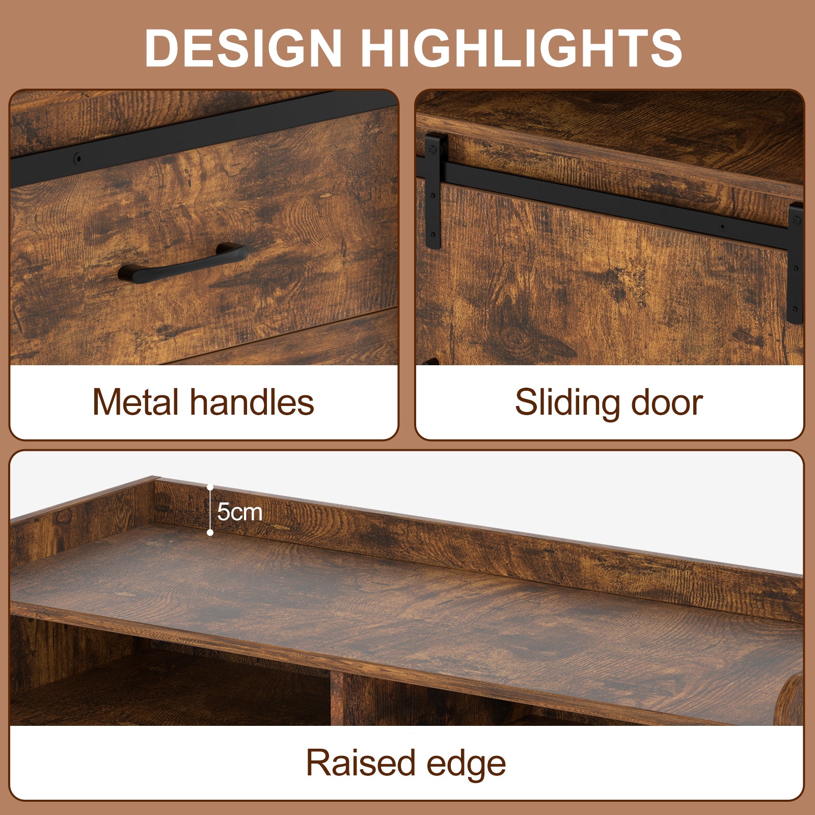 Smart storage layout: sliding door with adjustable shelf, 3 smooth drawers, 2 open compartments