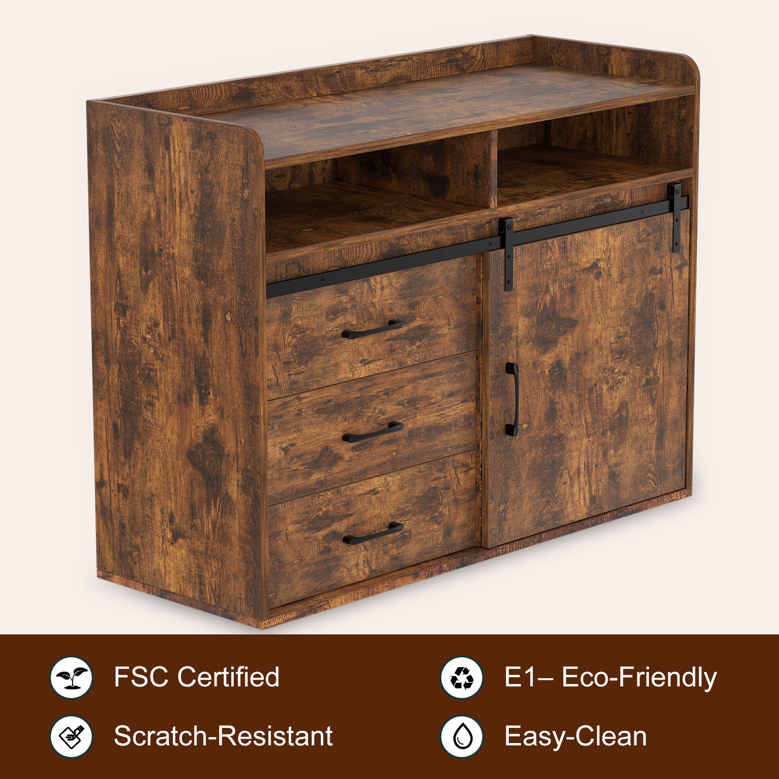 HOMAVO Modern Sideboard – 3 Drawers, 1 Sliding Door & 2 Open Shelves | Elegant Storage Cabinet for Living Room or Dining Room