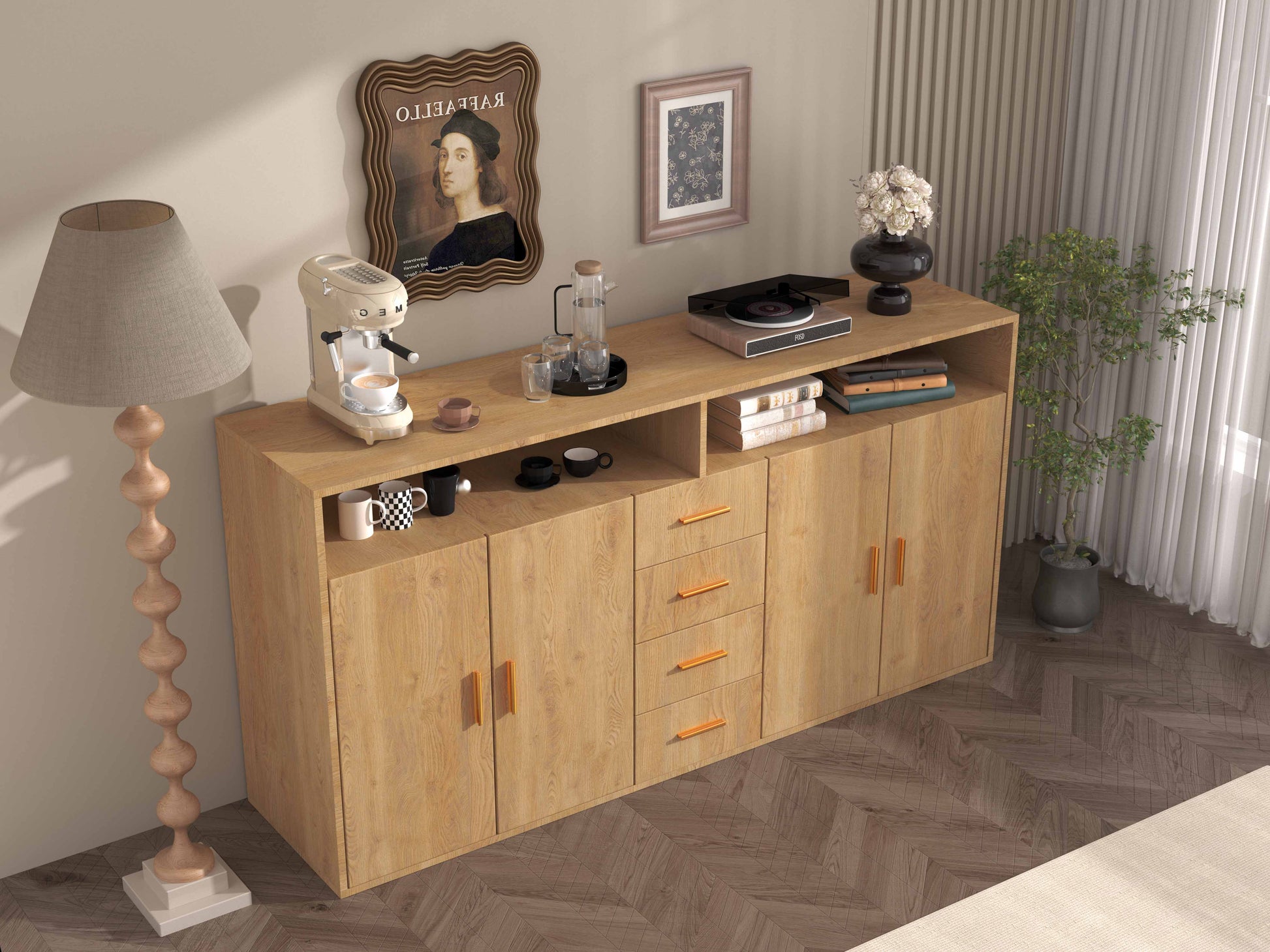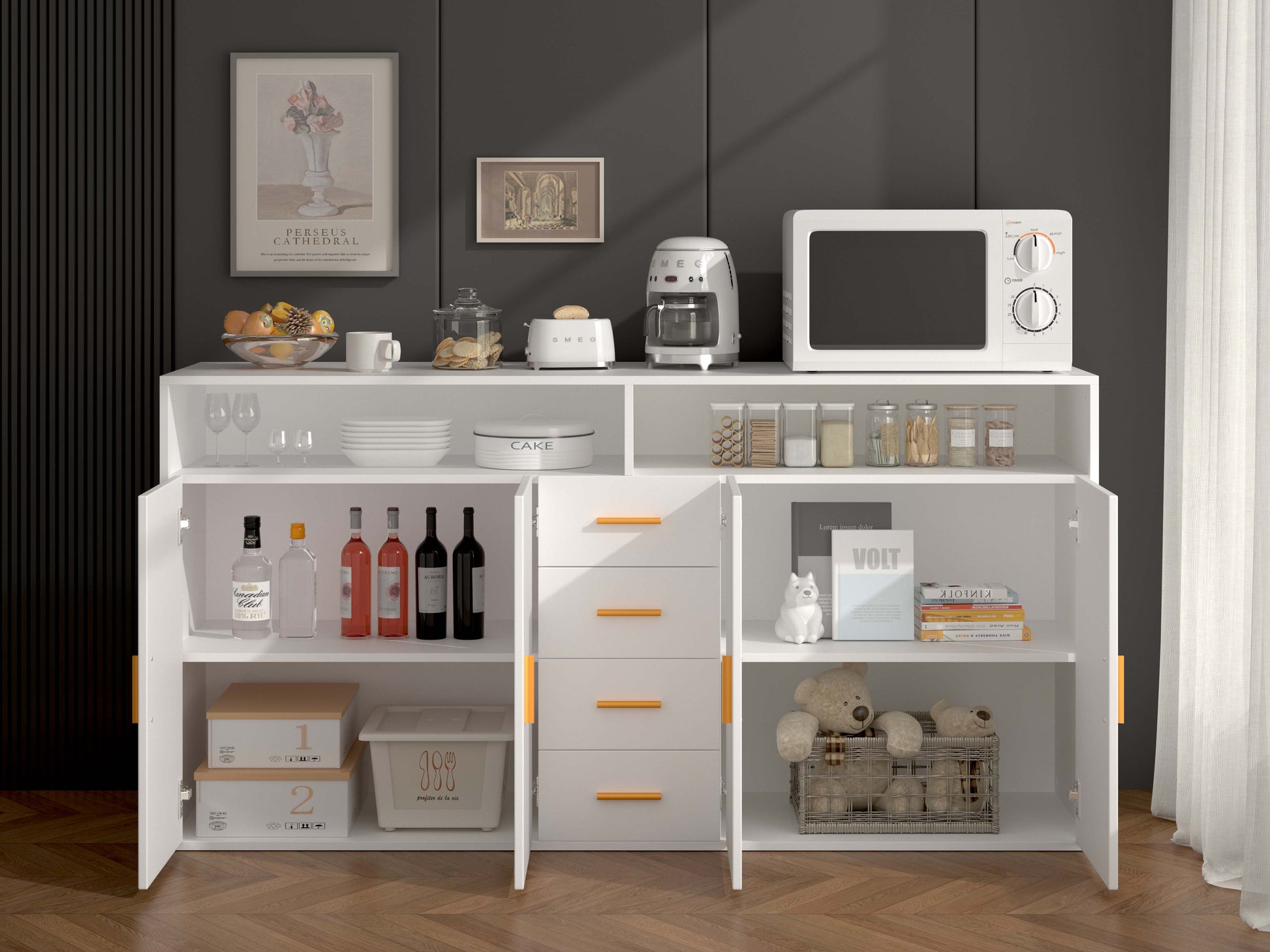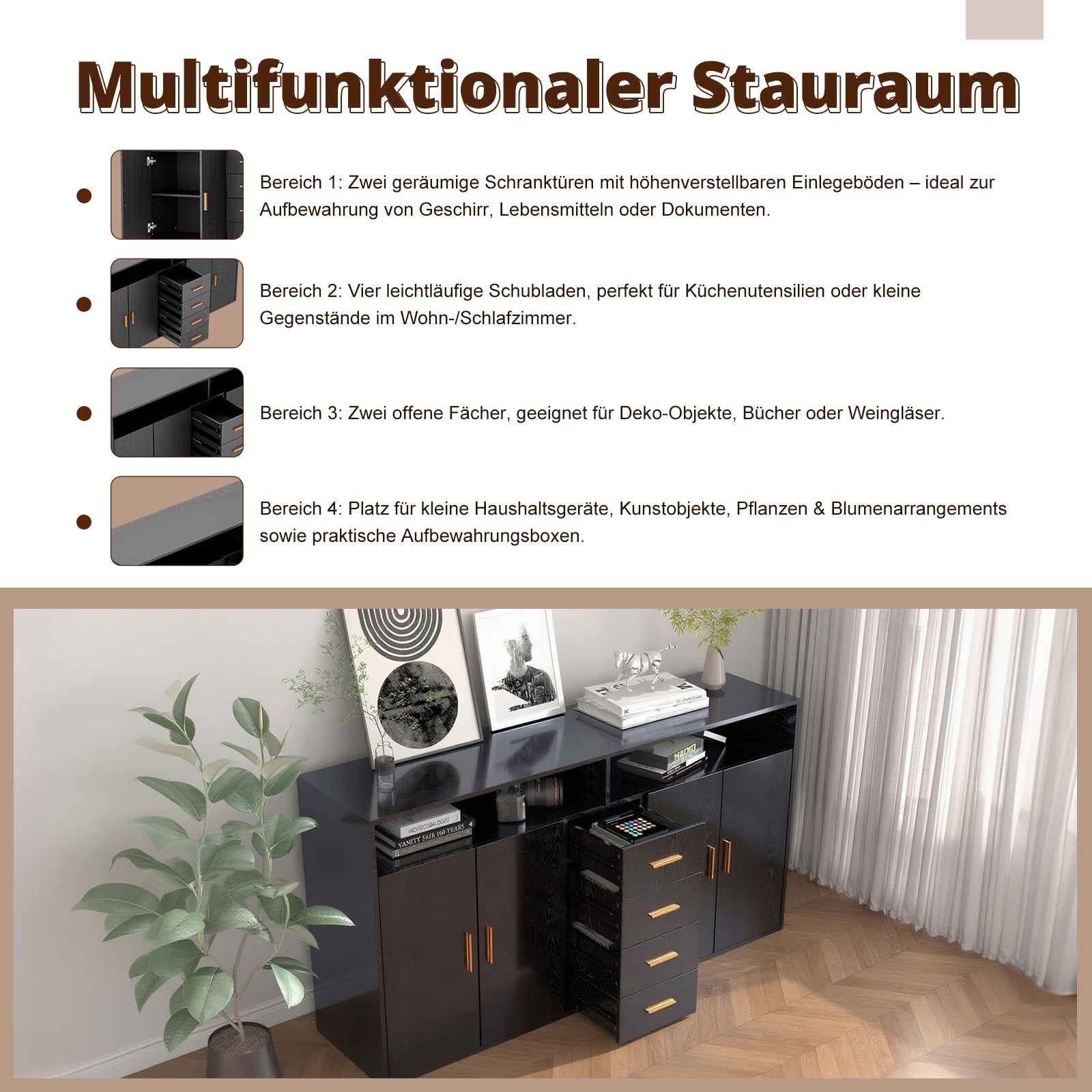 HOMAVO Modern Storage Sideboard with 4 Drawers, 2 Doors and 2 Open Shelves – Buffet Cabinet for Living Room or Dining Room