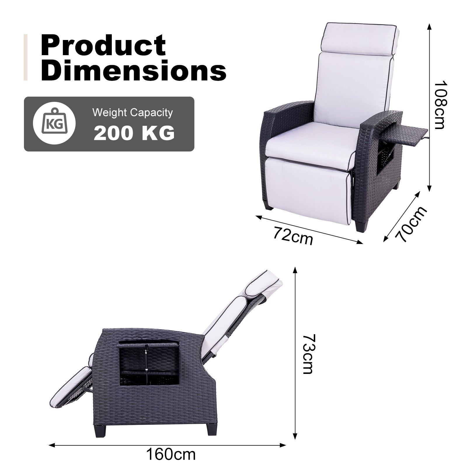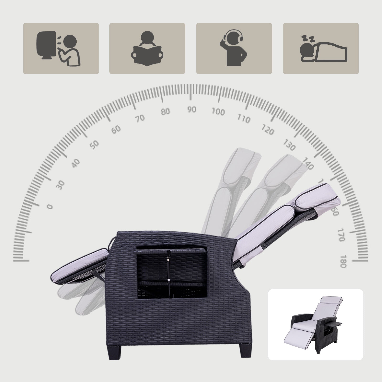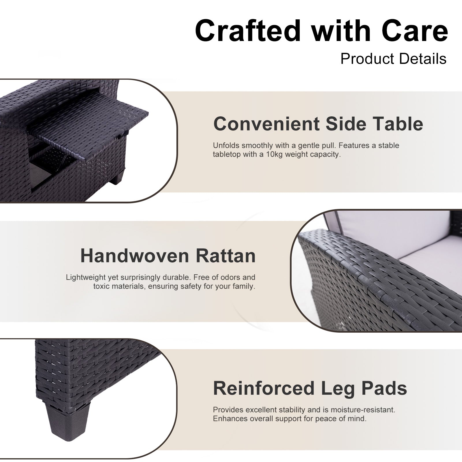 HOMAVO TY01 Rattan Recliner Armchair – Adjustable Backrest, Built-in Side Table, Waterproof & Sun-Resistant, Ideal for Indoor, Balcony, Patio, and Garden