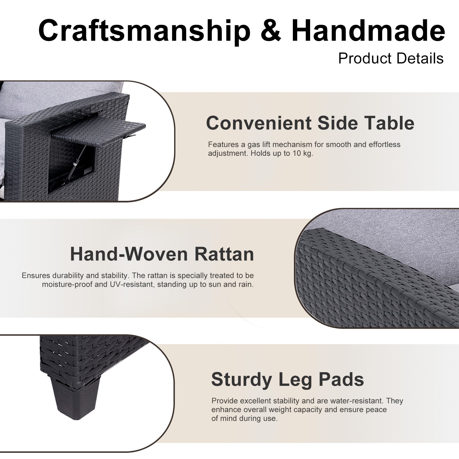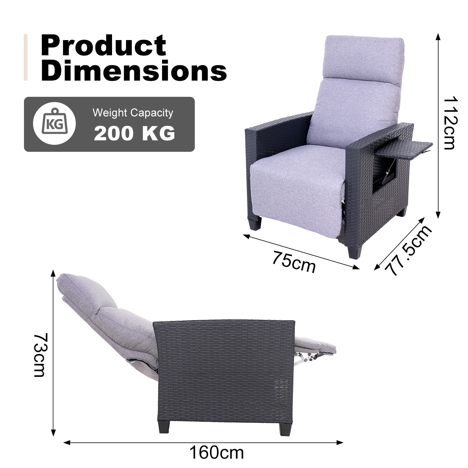 HOMAVO TY02 Rattan Recliner Armchair – Adjustable Backrest, Built-in Side Table, Waterproof & Sun-Resistant, Ideal for Indoor, Balcony, Patio, and Garden