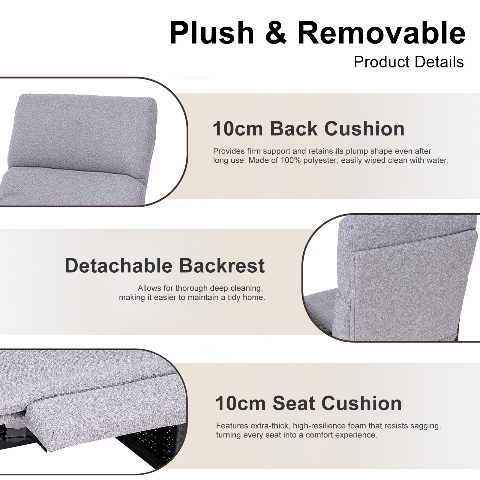 The recliner features an adjustable backrest with two tilt options: 120° and 160°. 120° is ideal for working or reading with a comfortable upright posture.